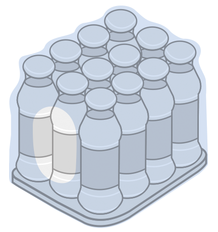 packs with tray and film