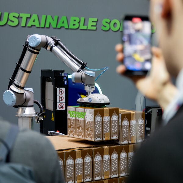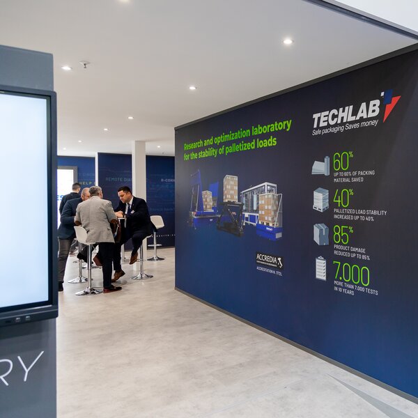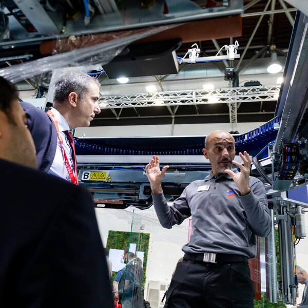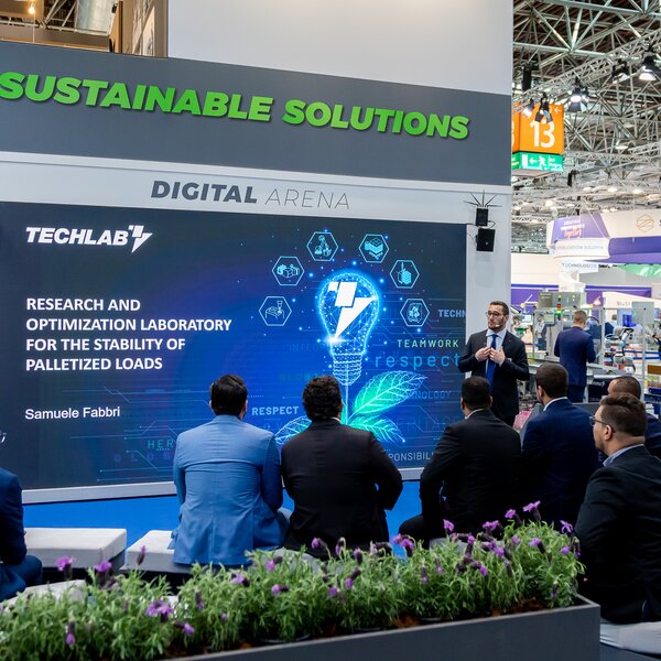 A new feature of this trade fair included three daily presentations delivered directly by the group's experts in the Digital Arena, an area specially created to provide a comprehensive view of products and central topics such as load stabilisation, the approach to sustainability, stretch wrapping, palletising and depalletising systems, digital services, logistics solutions, integrated solutions and TechLab, the world's most advanced research laboratory.