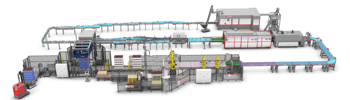 The collaboration between Robopac and Conserve Italia is historical, with actions mainly targeted at the French plants and Pomposa plant - one of the largest food factories in Italy - and aimed at the replacement of individual machines. In 2017 Robopac carried out a more complex project, which was the integration of a TC500 CW for glass bottles containing tomato puree to the already existing line.